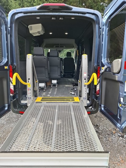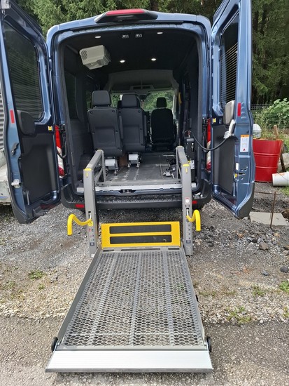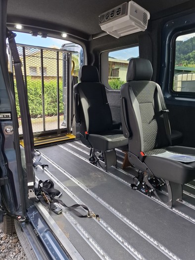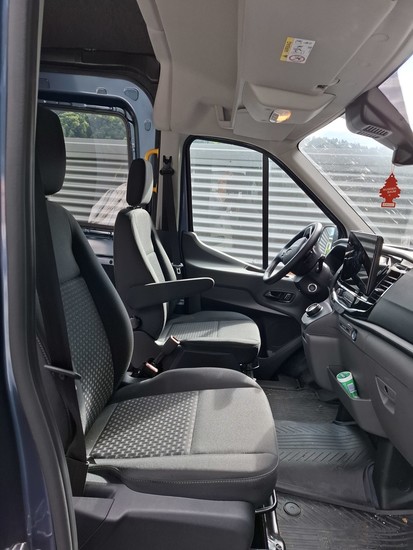 Naprodaj je prilagojeno vozilo Ford Transit Furgon TREND 2.0 TDCI 121 kW (165 KM), A8 L2H2 FWD 350 za 63.700,00 evrov. Vozilo je prilagojeno za invalida: ima prilagojen varnostni pas, hidravlično in električno dvigalo, vgrajeno letev za vpenjanje invalidskega vozička, varnostne pasove za pritrditev vozička ter potrdilo o skladnosti (homologacija). Vozilo je novo, registrirano od aprila 2025, brez prevoženih kilometrov.